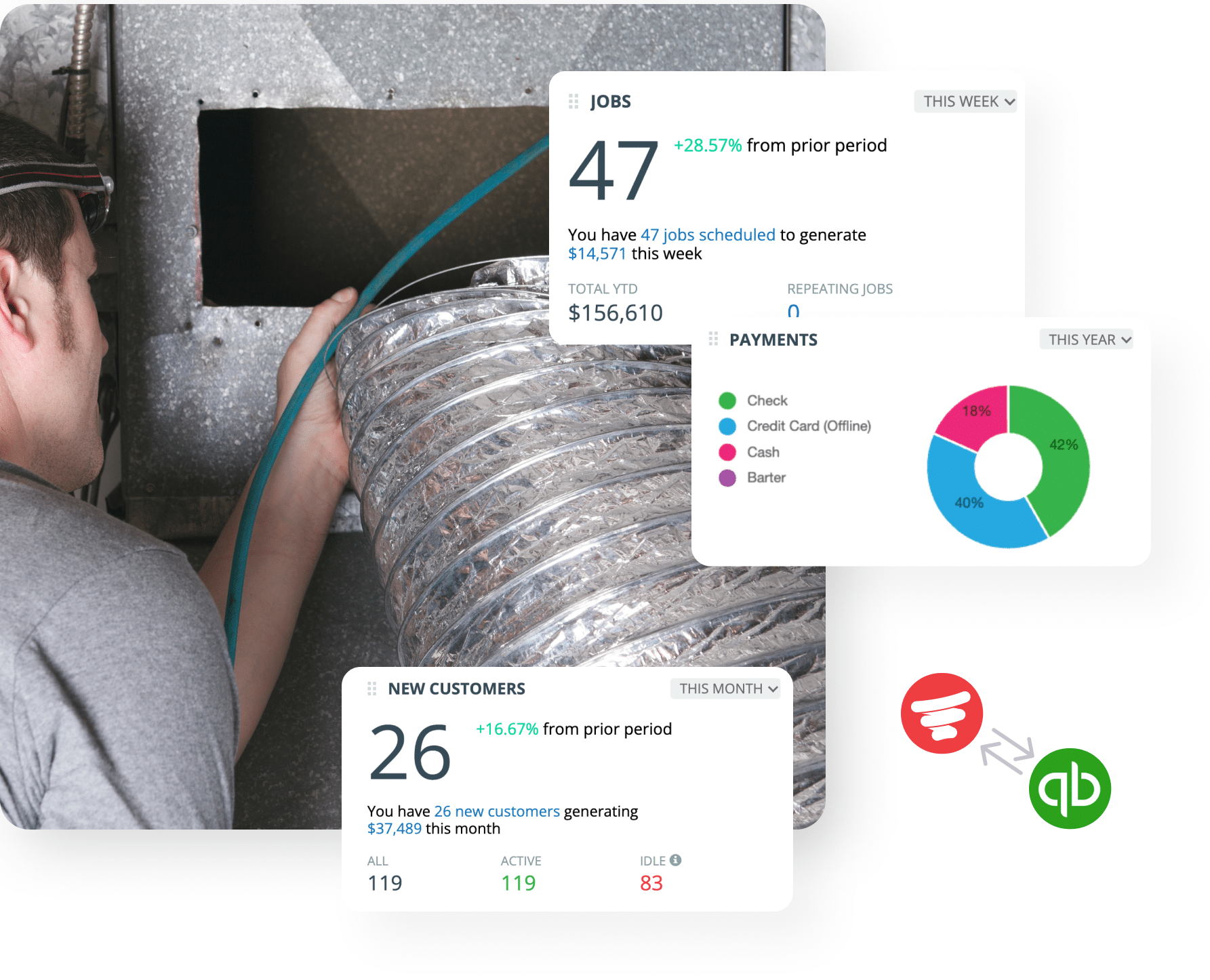Your cleaning techs are always on the move between jobs, and their software needs to be accessible. Service Fusion’s air duct cleaning software lets them—and you—work from anywhere. Work from the field, the office, or home with a companion mobile app that offers every feature and function the desktop version does