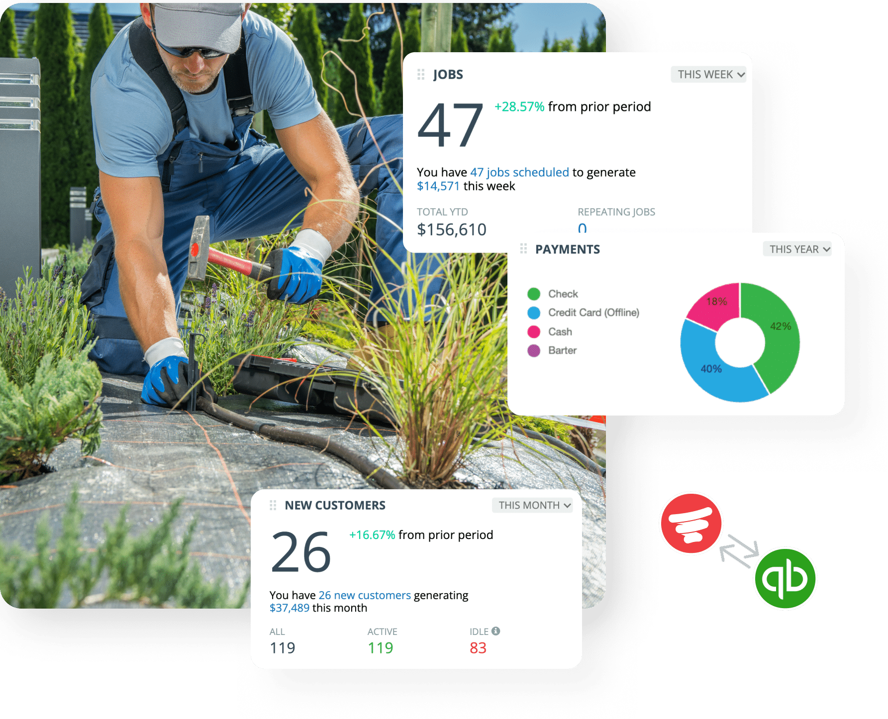 - Bring accounting and service together with QuickBooks integration