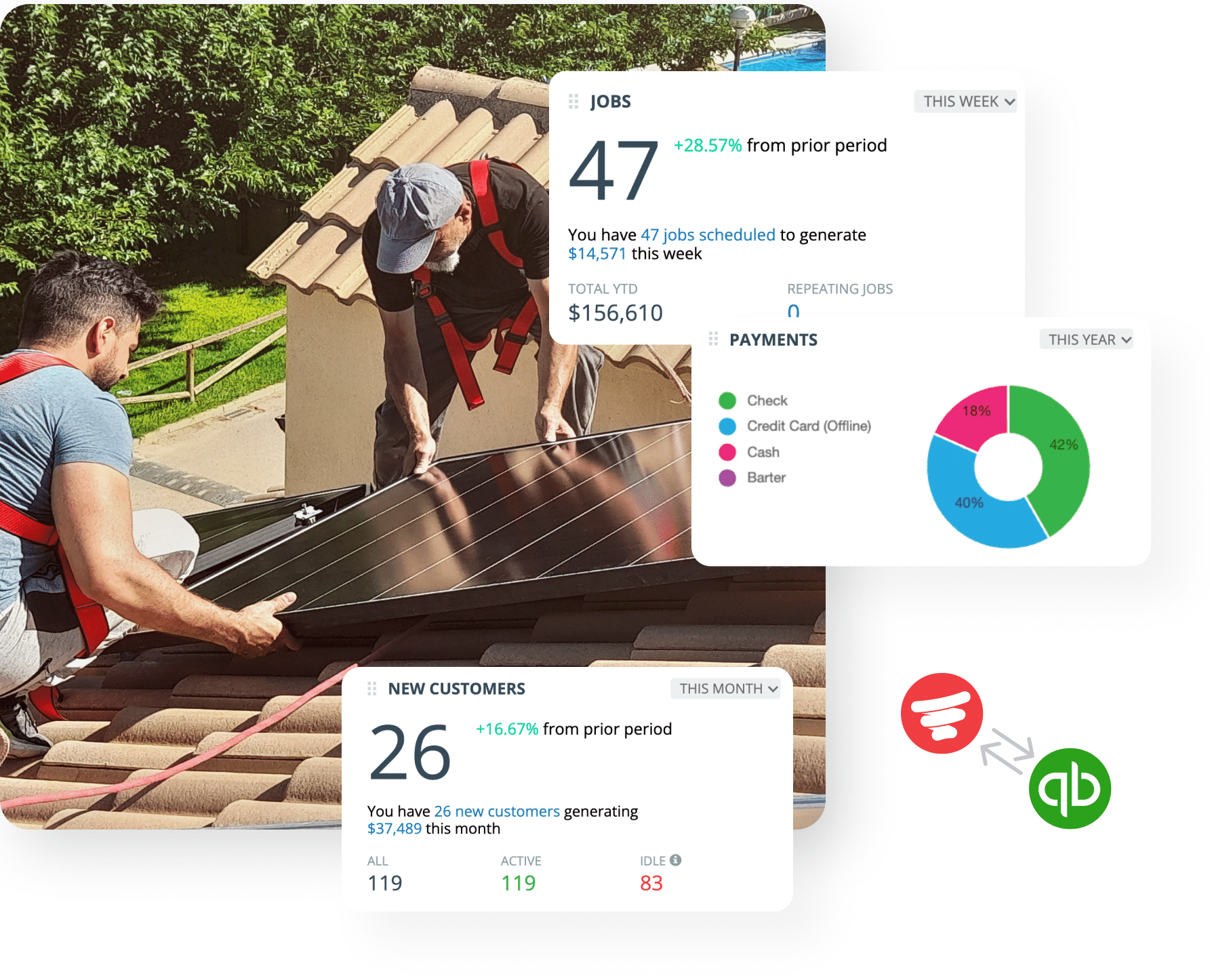 Stay productive from the field or Fiji. Service Fusion’s solar field service management software supports operators in the field, the office, and anywhere in between. Improve your efficiency, cash flow, and visibility with one mobile app.